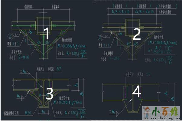 (4)框架梁在偏心支撑下跨间的非消能梁端,当其侧向支撑间距大于136f根号下235/fy利于次梁作为框架梁上下翼缘的侧向支撑,且当其hbx_b_a_i_x_i_n_g_c_o_m≥HB/2时可采用本节点的做法。